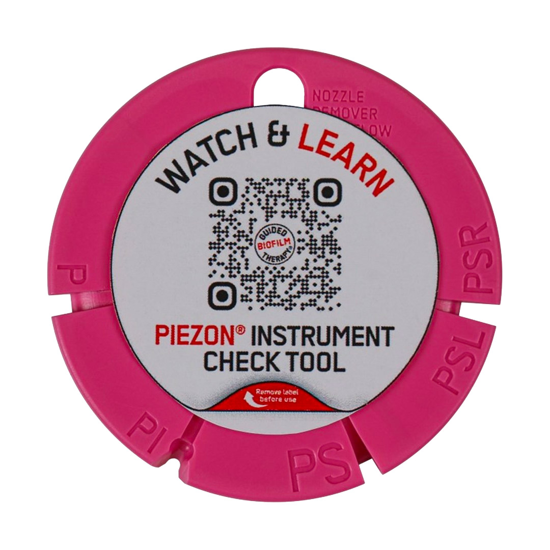 To EMS Check Tool is used to check the wear of your Piezon instruments and to remove the Peiroflow nozzle. Once the tips are worn away, excessive and uncontrolled vibrations can result. You should therefore check your instruments on a regular basis so that you can always offer your patient a comfortable and painless GBT treatment. The Check Tool also helps to remove the Perioflow Nozzle easily.