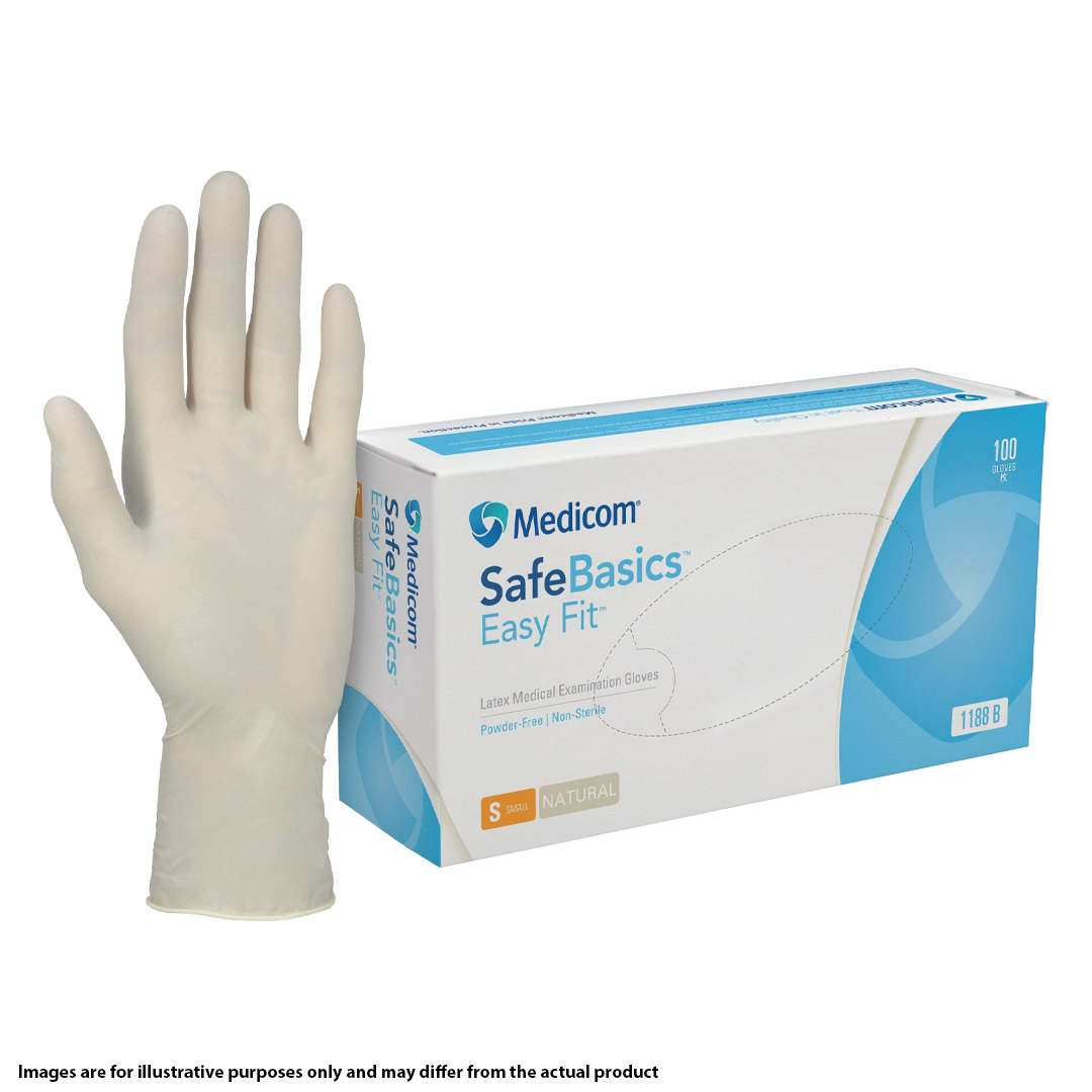 Medicom SafeBasics Easy Fit Natural Latex Powder Free Gloves Extra Large 100's (10)