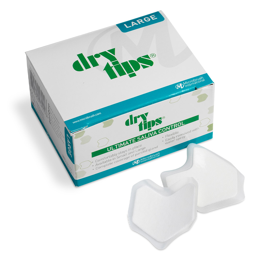 DryTips are Microbrush International’s newest product offering in the moisture control category. Their saliva absorption capacity far outlasts cotton rolls and other absorbent pads and doesn’t lose moisture when handled. DryTips facilitates work far back in the oral cavity by keeping the procedure area clean and dry.