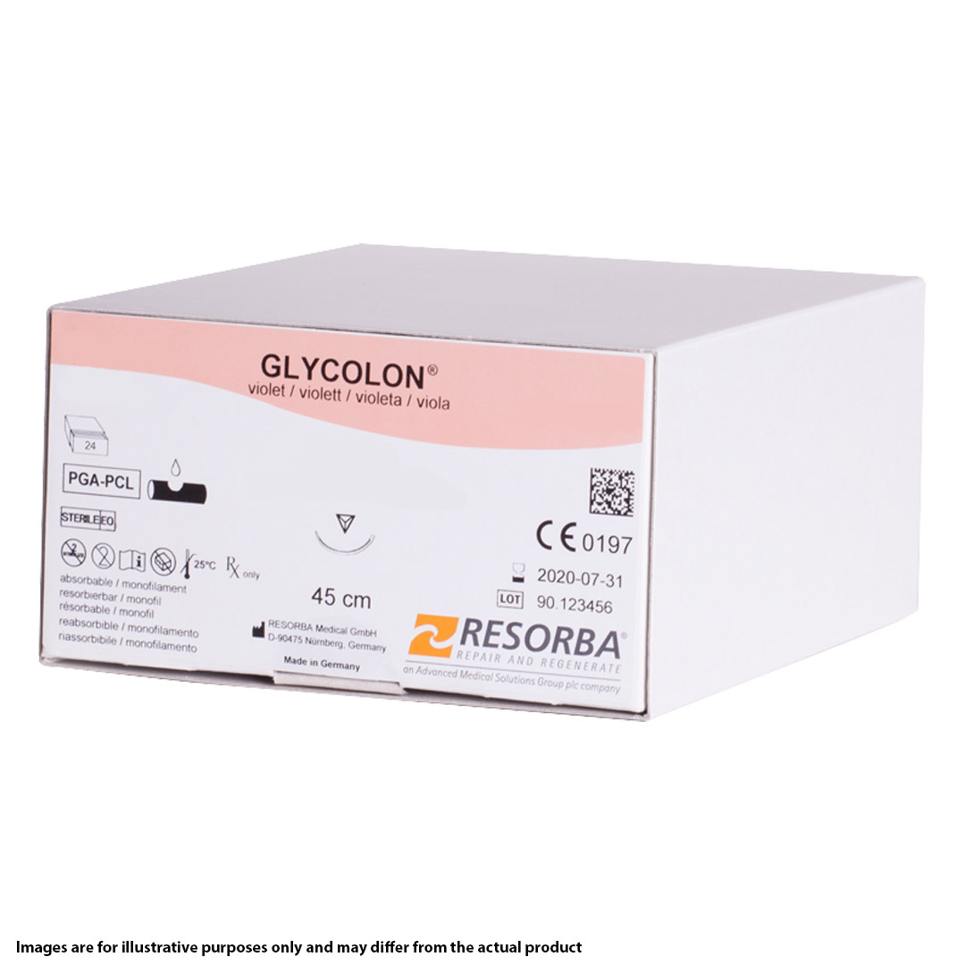 Resorba Glycolon Suture 5/0 with DS 18 18mm 3/8 Circle Reverse Cutting Needle 70cm Undyed (24)